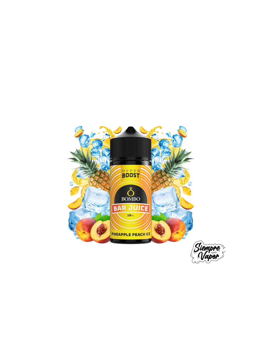 Aroma Pineapple Peach Ice de Bombo Bar Juice Hyper Boost es un Longfill premium de 10ml que ofrece una experiencia frutal y refrescante. Combina la dulzura de la piña con la jugosidad del melocotón y un toque helado que aporta frescor en cada calada. Este concentrado te permite personalizar tu e-líquido añadiendo base PG/VG y nicotina si lo deseas. Ideal para quienes buscan una mezcla equilibrada, exótica y fresca.