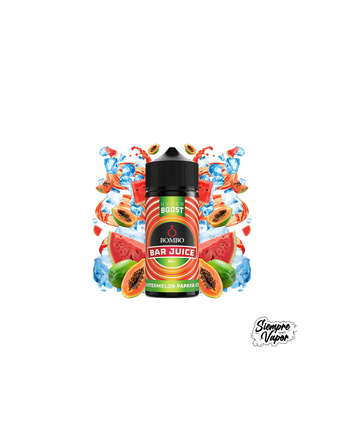 Aroma Watermelon Papaya Ice de Bombo Bar Juice Hyper Boost es un Longfill premium de 10ml que ofrece una experiencia tropical y refrescante. Este concentrado combina la dulzura jugosa de la sandía con la suavidad exótica de la papaya, todo acompañado por un potente frescor que revitaliza cada calada. Podrás personalizar tu e-líquido añadiendo base PG/VG y nicotina si lo deseas. Ideal para quienes disfrutan de sabores frutales con un toque helado y equilibrado.