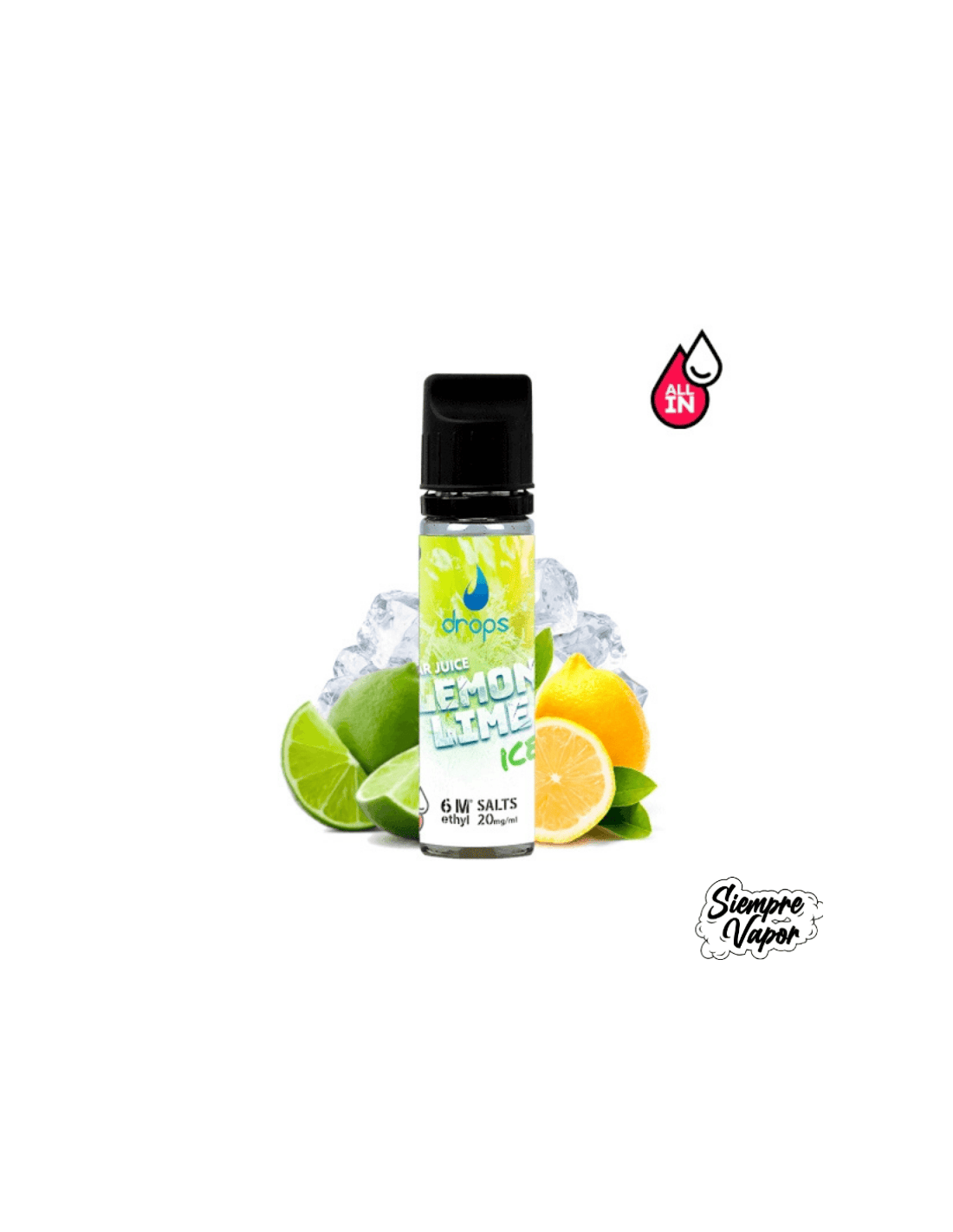Drops All In Bar Juice Lemon Lime Ice 10ml - Drops combina la acidez cítrica del limón y la frescura vibrante de la lima, con un toque refrescante de hielo. Un e-líquido ideal para quienes buscan un sabor intenso, refrescante y con un golpe de garganta pronunciado.