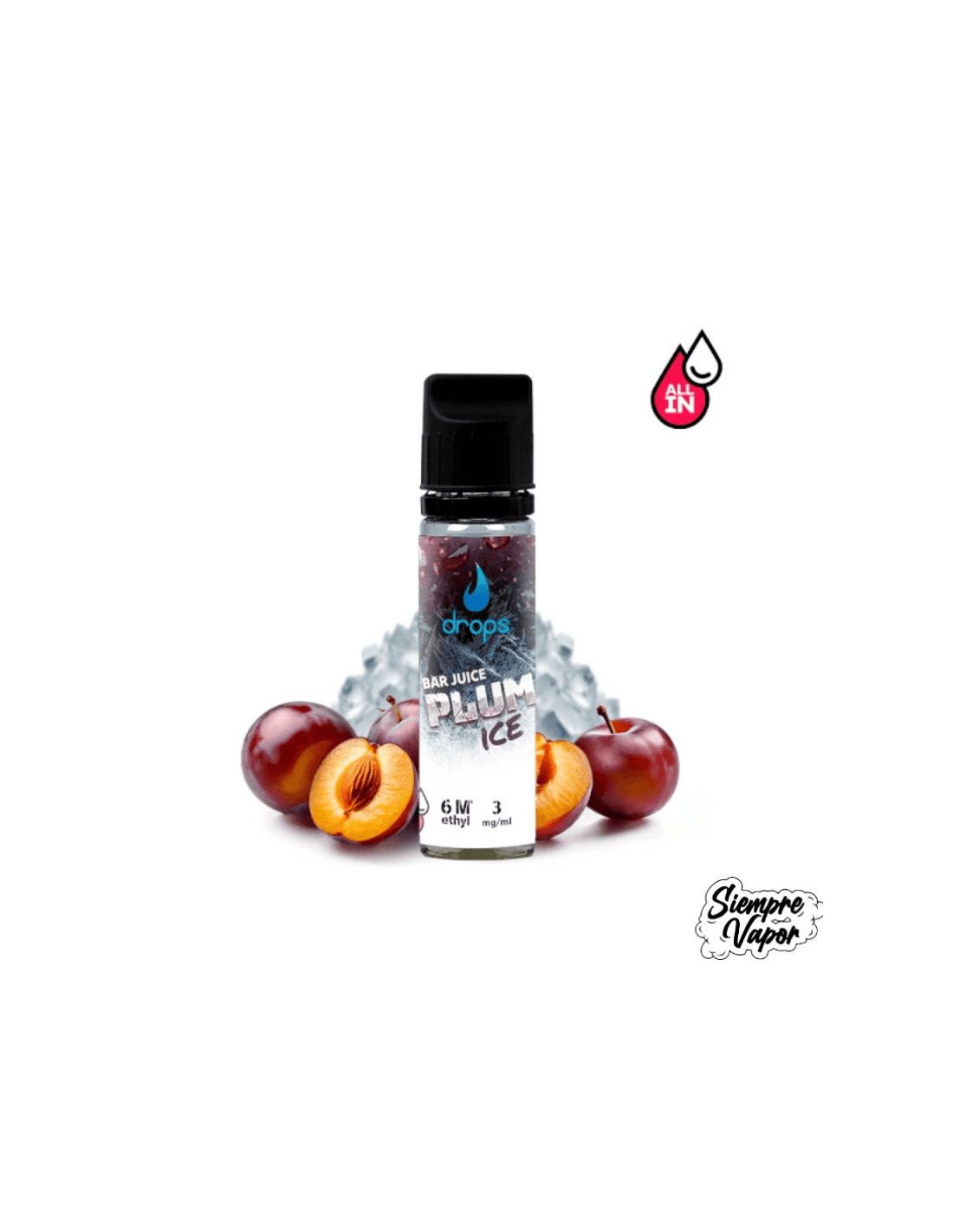 Drops All In Bar Juice Plum Ice 10ml - Drops es una combinación excepcional de ciruela madura con un toque de hielo, creando una fusión equilibrada entre dulzura, acidez y frescura.
