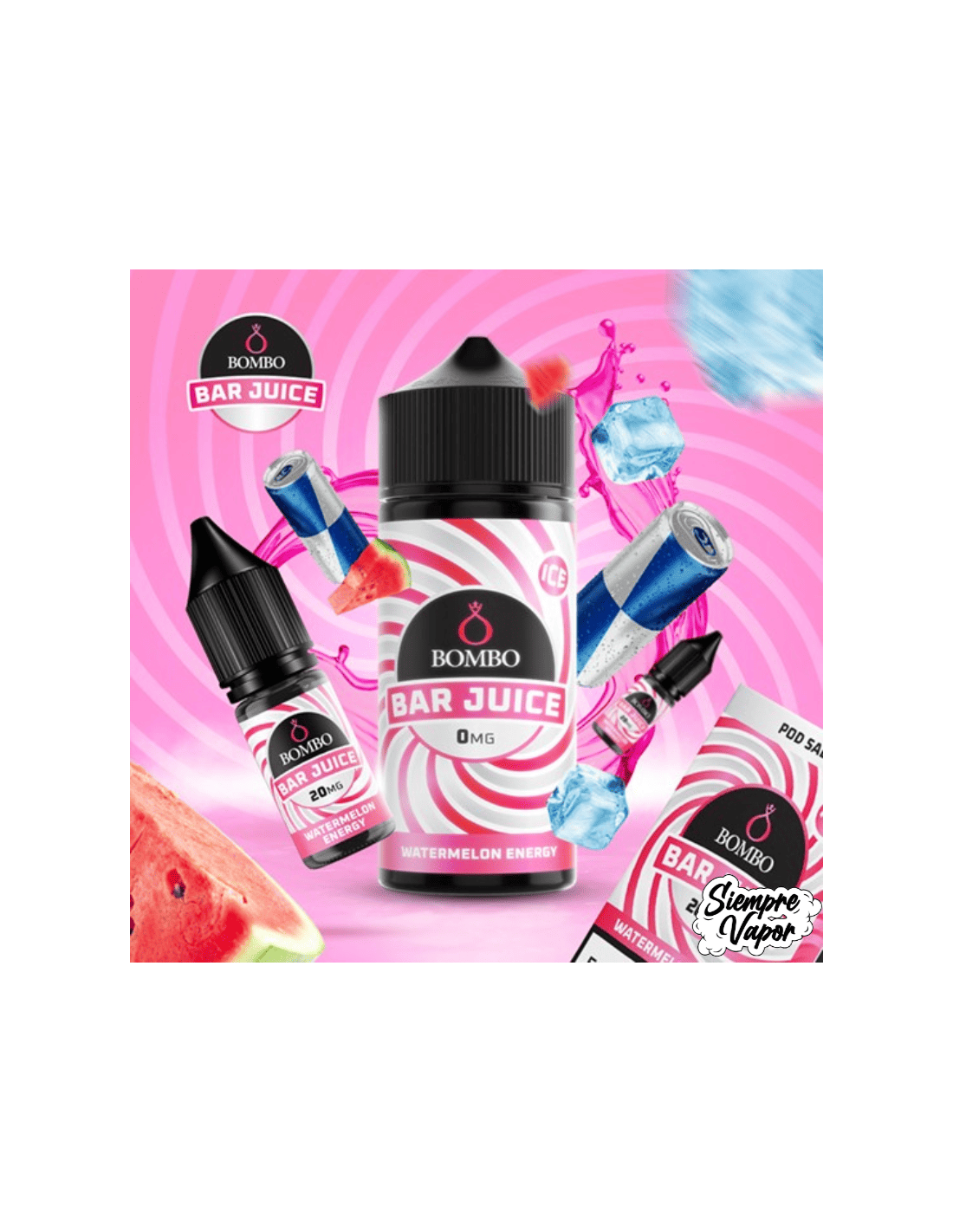 Aroma Watermelon Energy Ice de Bar Juice by Bombo es un concentrado Longfill premium de 24ml que ofrece una experiencia refrescante y afrutada. Con este concentrado, podrás personalizar tu e-líquido añadiendo base PG/VG y nicotina (si lo deseas). La mezcla perfecta de sandía, energía y un toque de hielo es ideal para quienes buscan un sabor afrutado, energizante y refrescante.