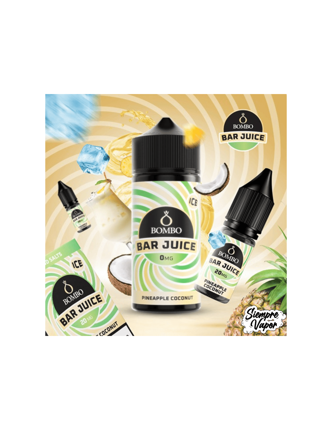 Aroma Pineapple Coconut Ice de Bar Juice by Bombo es un concentrado Longfill premium de 24ml que ofrece una experiencia de vapeo tropical y refrescante. Con este concentrado, podrás personalizar tu e-líquido añadiendo base PG/VG y nicotina (si lo deseas). La combinación de piña, coco y un toque de hielo es perfecta para quienes buscan un sabor exótico y fresco.