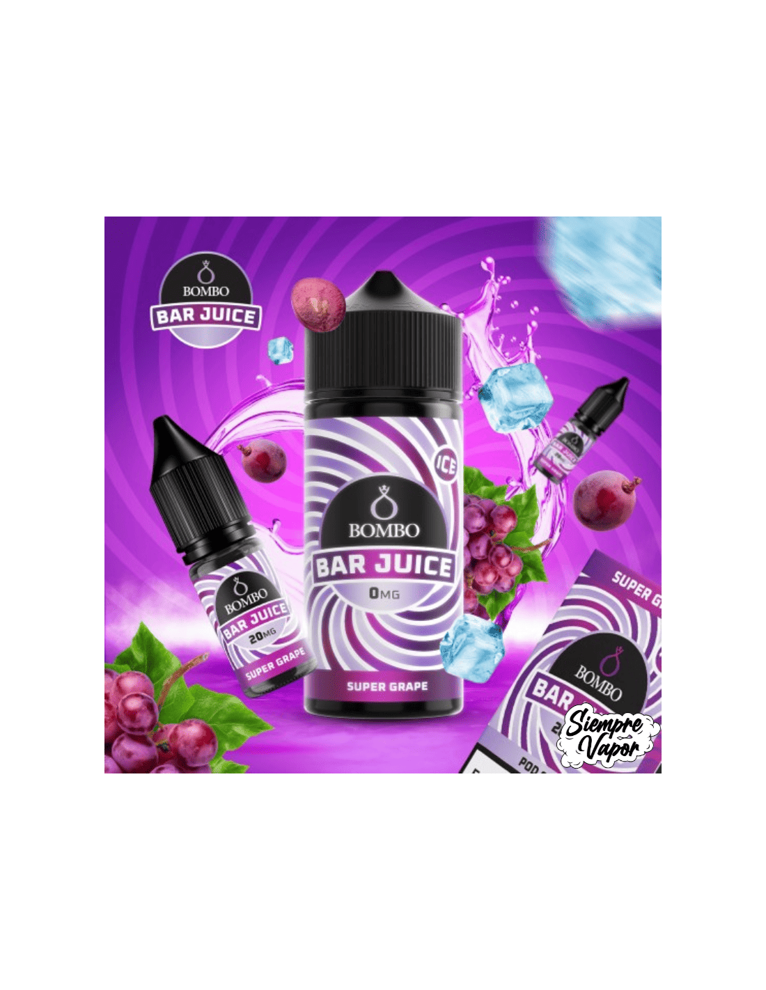 Aroma Super Grape Ice de Bar Juice by Bombo es un concentrado Longfill premium de 24ml que ofrece una experiencia de vapeo afrutada y refrescante. Con este concentrado, podrás personalizar tu e-líquido añadiendo base PG/VG y nicotina (si lo deseas). La mezcla de uva intensa con un toque helado es ideal para quienes buscan un sabor afrutado, dulce y refrescante.