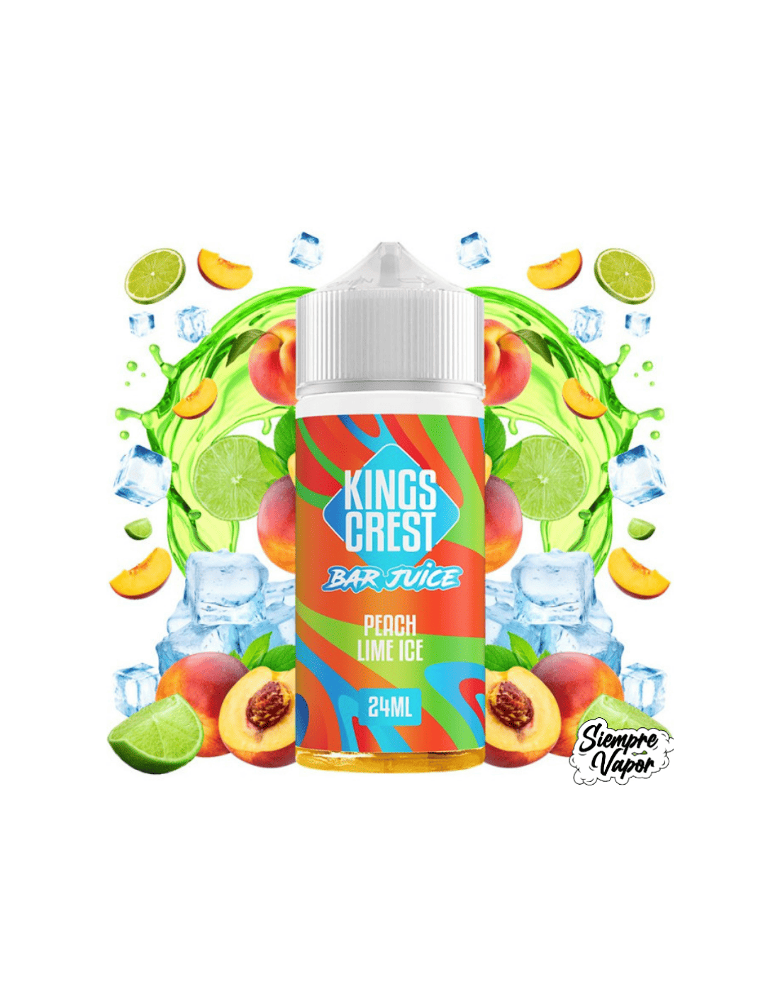 El Aroma Peach Lime Ice de Kings Crest Bar Juice es un Longfill de 24ml de concentrado en una botella de 120ml, permitiéndote personalizar tu mezcla agregando base y nicotina según tu preferencia. Su combinación de frutas dulces y cítricas con un toque de frescor lo convierte en una opción ideal para un vapeo refrescante y estimulante.