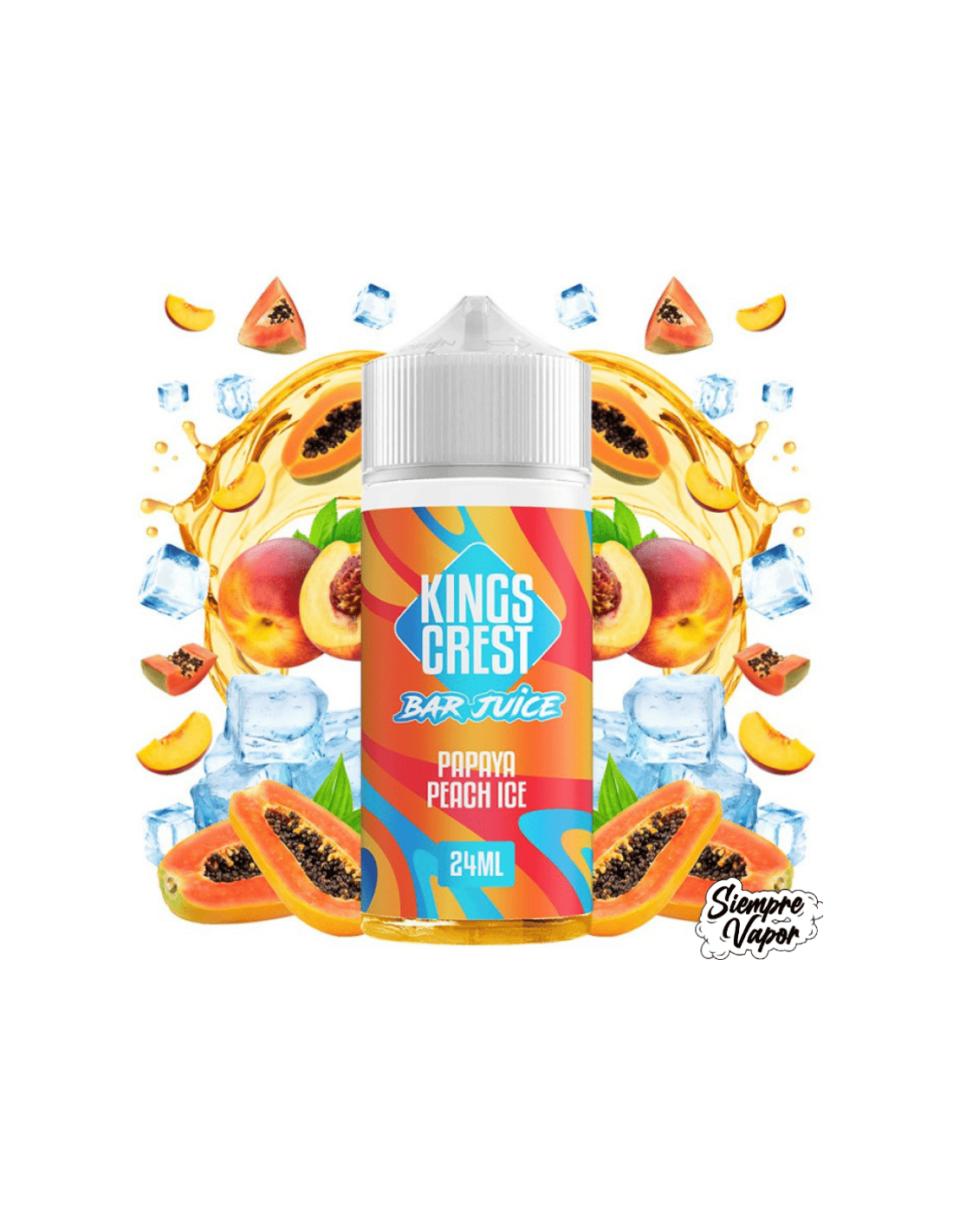 El Aroma Papaya Peach Ice de Kings Crest Bar Juice es un Longfill de 24ml de concentrado en una botella de 120ml, permitiéndote personalizar la mezcla agregando base y nicotina a tu gusto. Su perfil de sabor combina la suavidad tropical de la papaya con la intensidad dulce del melocotón, creando una experiencia equilibrada y refrescante.