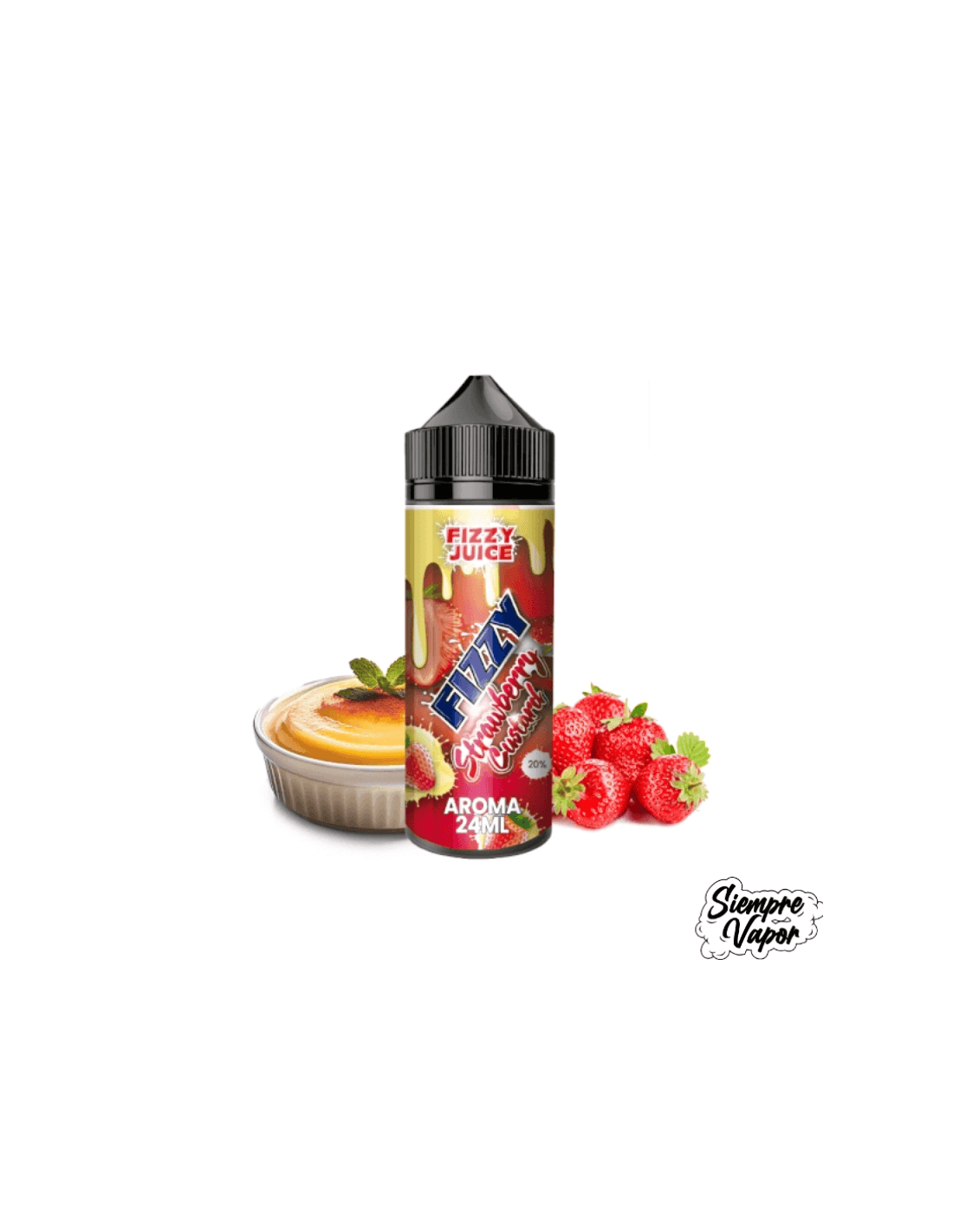 El Aroma Fizzy Juice Strawberry Custard Longfill contiene 24ml de concentrado en base 100 % PG, presentado en una botella de 120ml que deja espacio suficiente para añadir base PG/VG y nicotina según tus preferencias. Su perfil de sabor está pensado para quienes buscan una experiencia golosa, suave y duradera, combinando lo mejor de la fruta con la cremosidad del postre.