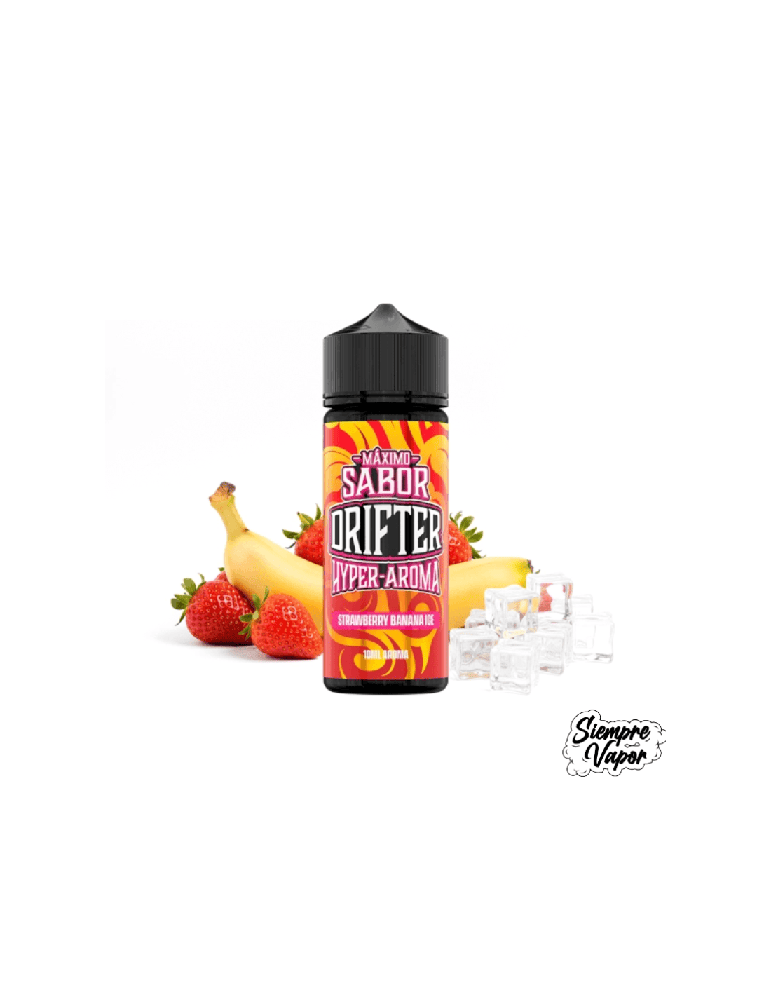 El Aroma Drifter Hyper Strawberry Banana Ice de 10ml es una opción premium para vapers que buscan sabores frutales definidos con un acabado frío. Este Longfill concentrado te permite personalizar tu e‑líquido según tus preferencias, añadiendo base PG/VG y nicotina para adaptarlo a tu gusto.