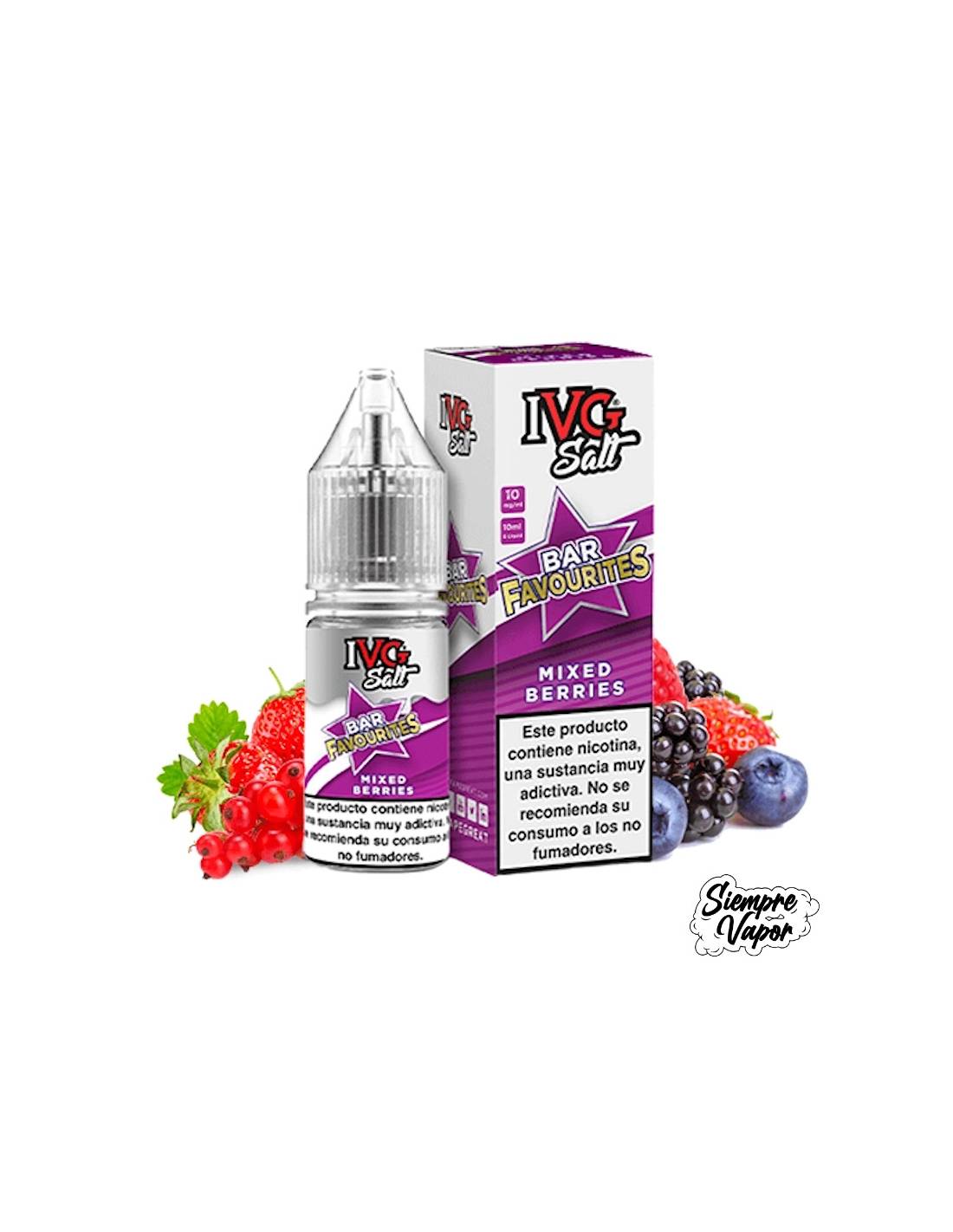 Disfruta del mundo del vapeo con las Sales Favourite Bar Salts Mixed Berries 10ml - IVG podrás disfrutar del exquisito sabor del dulce. Esta sal de nicotina ofrece la combinación una variedad de frutos del bosque, como fresas, moras, arándanos y frambuesas, para ofrecer una mezcla deliciosa y equilibrada de sabores naturales. El sabor dulce se mezcla perfectamente con toques refrescantes, transportándote instantáneamente a un paraíso tropical de playas con arena blanca y aguas cristalinas.